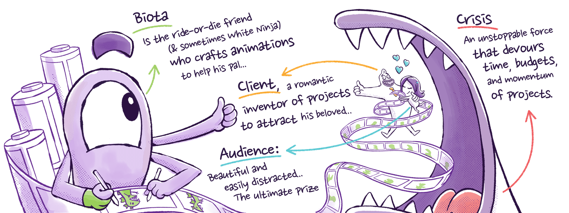 Get to know the character behind the craft. What does Biota value most? These (human-hand) drawn adventures capture the stress, the fun, and the beautiful chaos of the creative life. A raw, humorous look and a backstage pass to the heart of the studio.